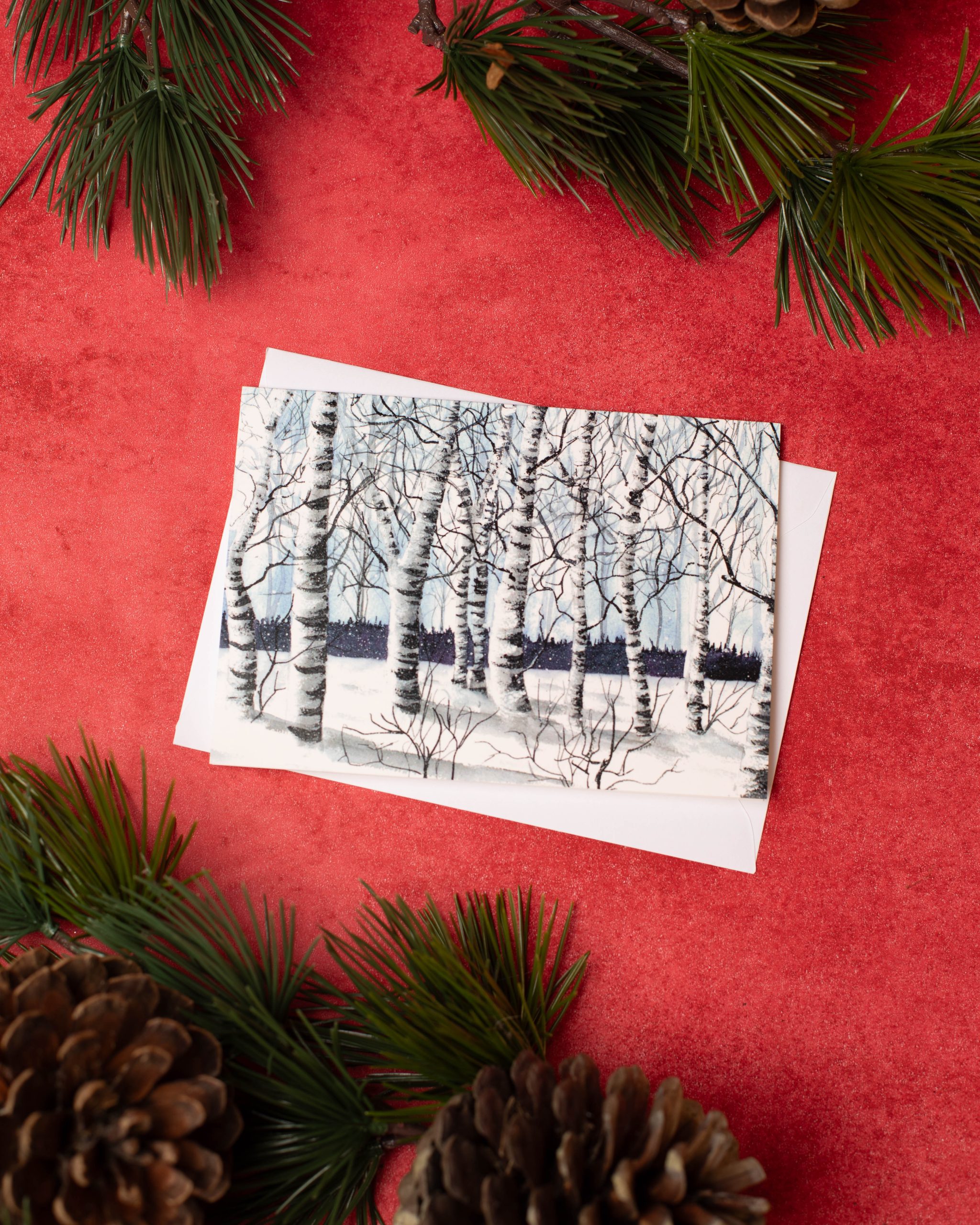 “Icy Covered Silver Birch Woodland” is a limited-run Christmas card reproduced from an original artwork by Boo. Printed in A6 format and supplied with a plain envelope. Inside message: “Merry Christmas”. A thoughtful way to share seasonal greetings.