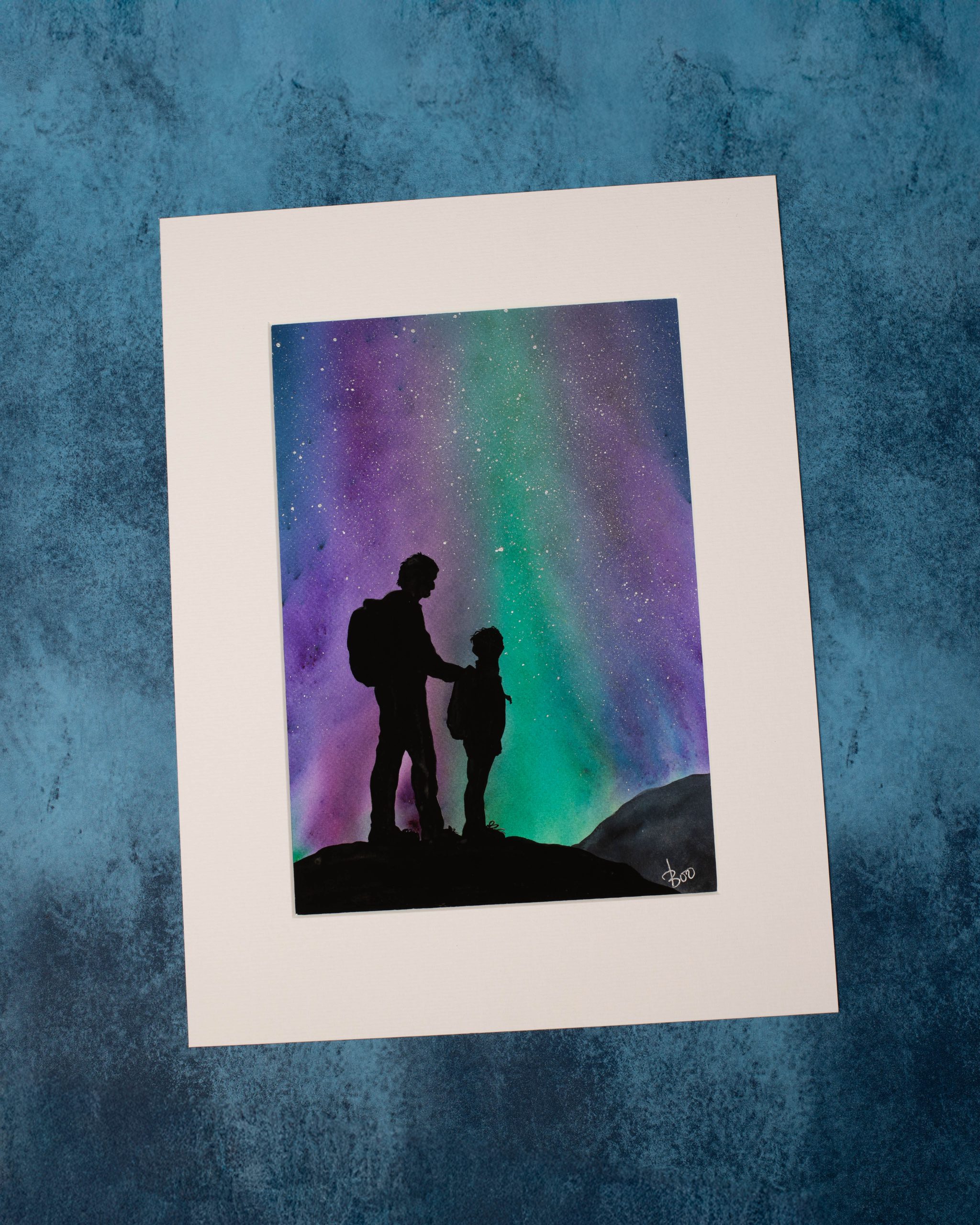 An original watercolour painting by Boo. Hand-finished painting on heavyweight paper. Mounted with backing board. Approximately 40 x 30cm. Signed by the artist.
